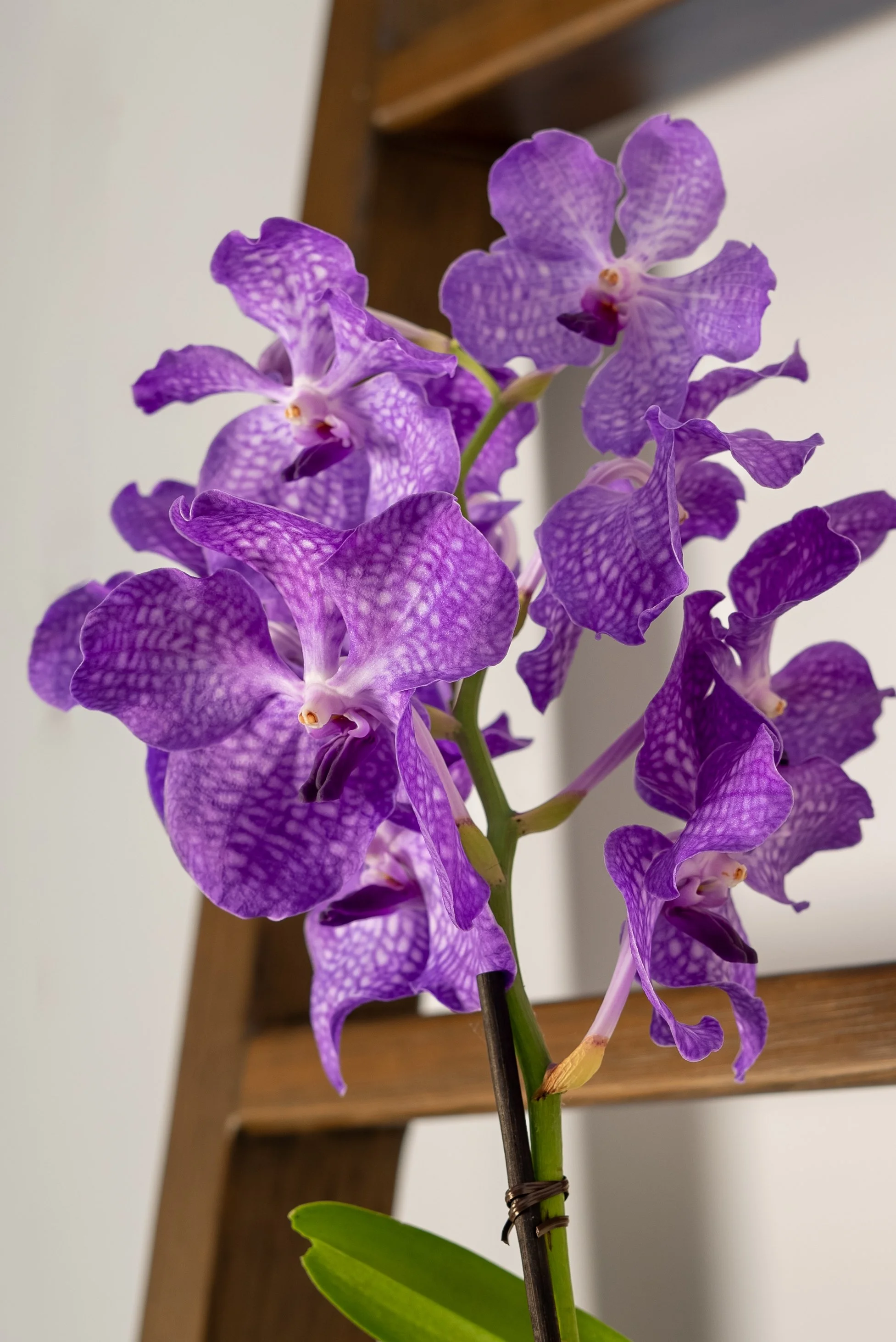 Una de las orquídeas más exclusivas. Su floración aérea y colores intensos la convierten en una pieza protagonista, pensada para quienes buscan algo poco común y visualmente impactante.